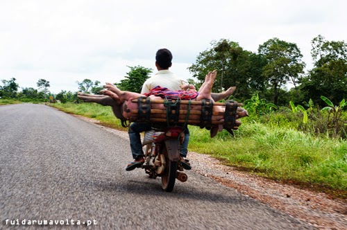 É preciso imaginação, coragem, equilíbrio, boa vontade e uma dose de loucura para conseguir transportar a quantidade/variedade de coisas/animais/pessoas que os cambodjanos carregam sobre rodas.