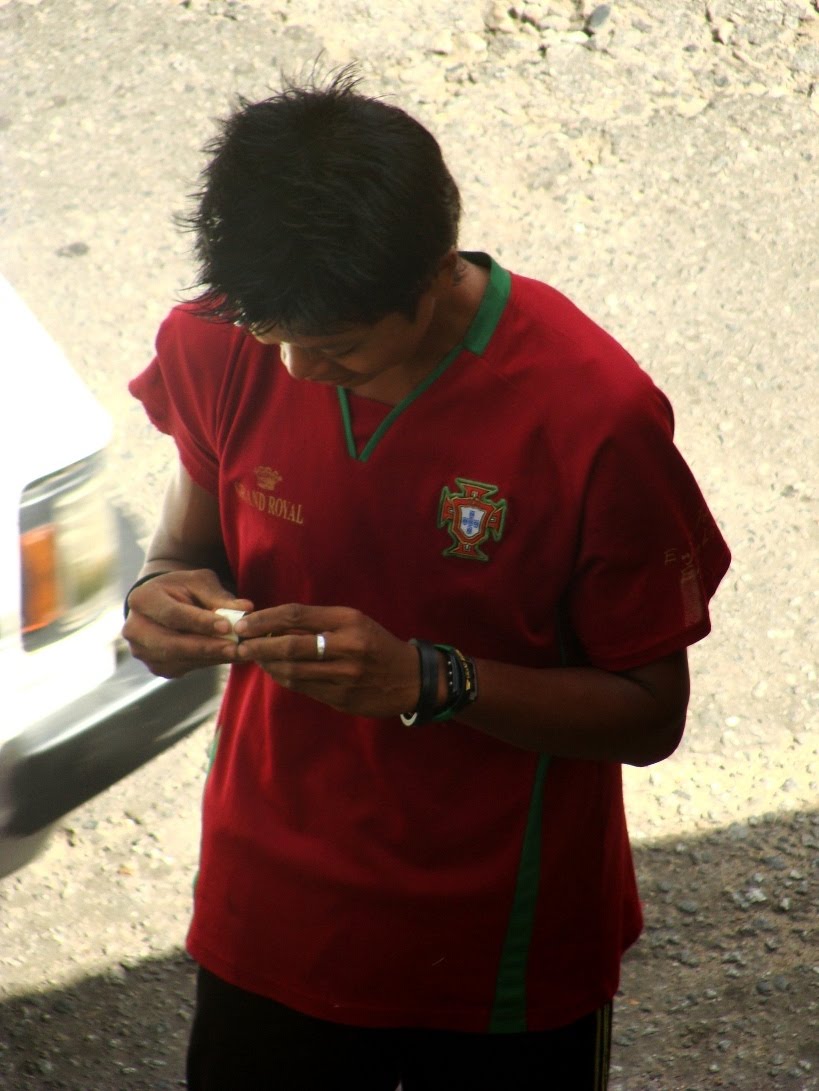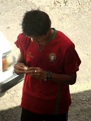 O Messi pode ganhar as Bolas d'Ouro que quiser - mas ninguém bate o Cristiano em popularidade. Estas foram tiradas em Yangon, na Birmânia. Reparem no pormenor da parte da frente da camisa, nas palavras "Grand Royal". É o nome de um dos melhores hotéis do país, provavelmente mandaram fazer t-shirts para o Mundial.