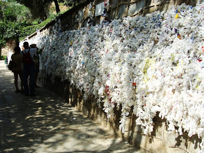 Gostei muito do muro onde as pessoas deixam, escritos em pedaços de papel enrolado, os deus pedidos à Virgem. Havia, inclusive, uma foto da pequena Maddie.